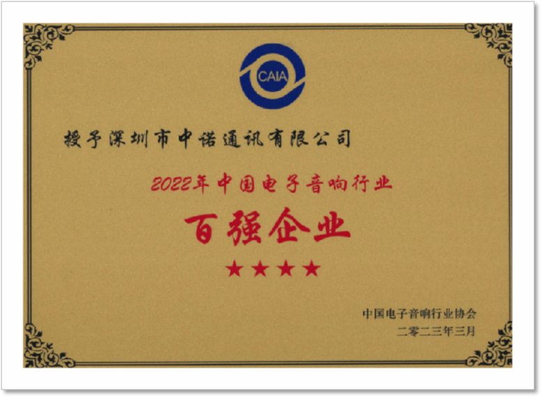 2022年中國(guó)電子音響行業(yè)百?gòu)?qiáng)企業(yè)