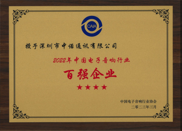 據(jù)悉,該榜單以行業(yè)企業(yè)2022年的企業(yè)生產(chǎn)總額、營收數(shù)據(jù)、企業(yè)估值等作為入圍標準。入選企業(yè)均為電子音響行業(yè)內(nèi)的佼佼者與領(lǐng)軍者,此次榮登行業(yè)百強榜單是市場對中諾通訊的充分肯定。