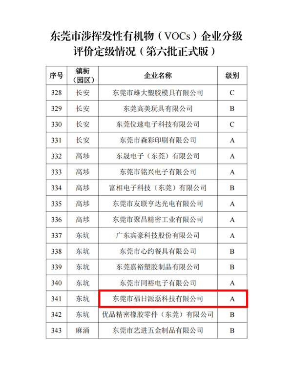近日,東莞市生態(tài)環(huán)境局公布第六批涉揮發(fā)性有機物(VOCs)企業(yè)分級評價結果。福日電子成員企業(yè)源磊科技憑借規(guī)范完備的治理體系與持續(xù)向好的環(huán)保成效,成功獲評最高等級——A級企業(yè),環(huán)境管理能力躋身行業(yè)與區(qū)域的標桿行列。